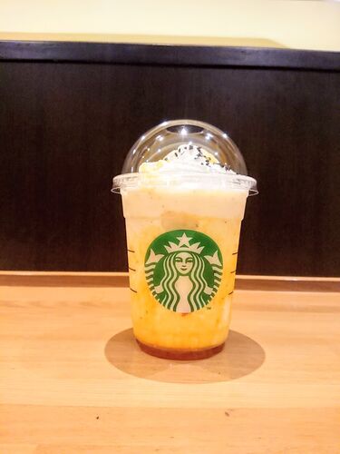 こちらのスタバもいつ通りかかっても席がないことが多かった・・・ 私が通りかかる時間がいけなかったのかしら。 この日はけっこう開いていて、充電席も座れたのでスマホ充電させていただきました。 odonaの地下。スタイリッシュ。 季節の大学芋フラペチーノ…
