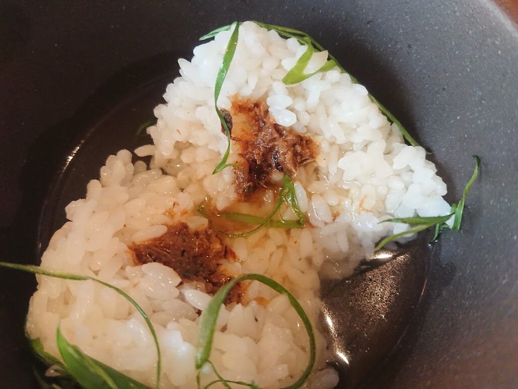 そしてハーフ&ハーフにはお出汁をかけて食べるおにぎりがついていて、