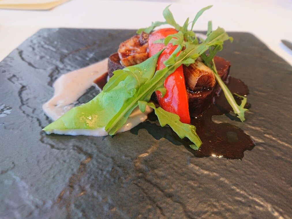 美しく一筆書きのように添えられたお芋のピューレも美味しかった。