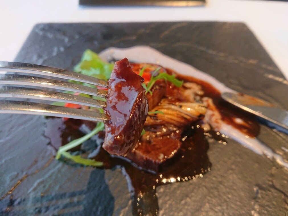 Beef tongue bourguignon with shadow queen purple potato Aligot and stewed Iwatsu negi green onion