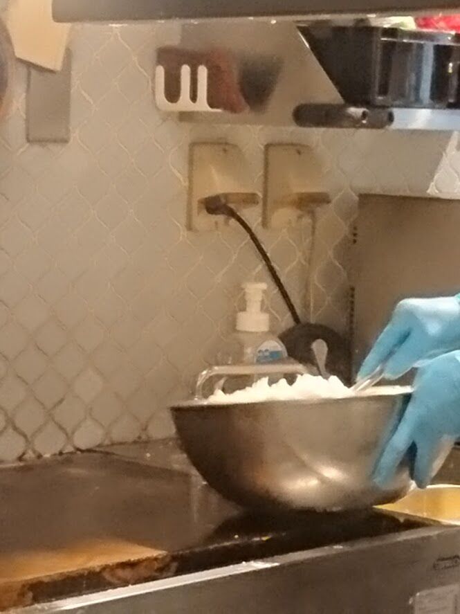 製造過程を見せてもらいましたが、この通り!生地をめっちゃ泡立ててはります。