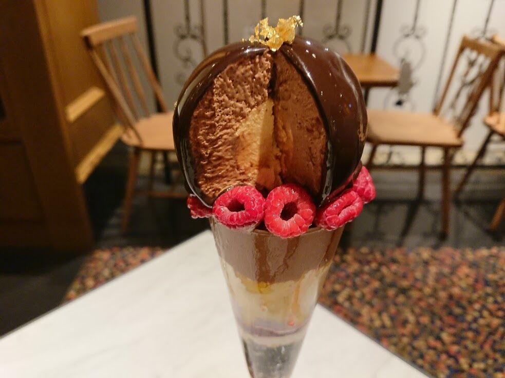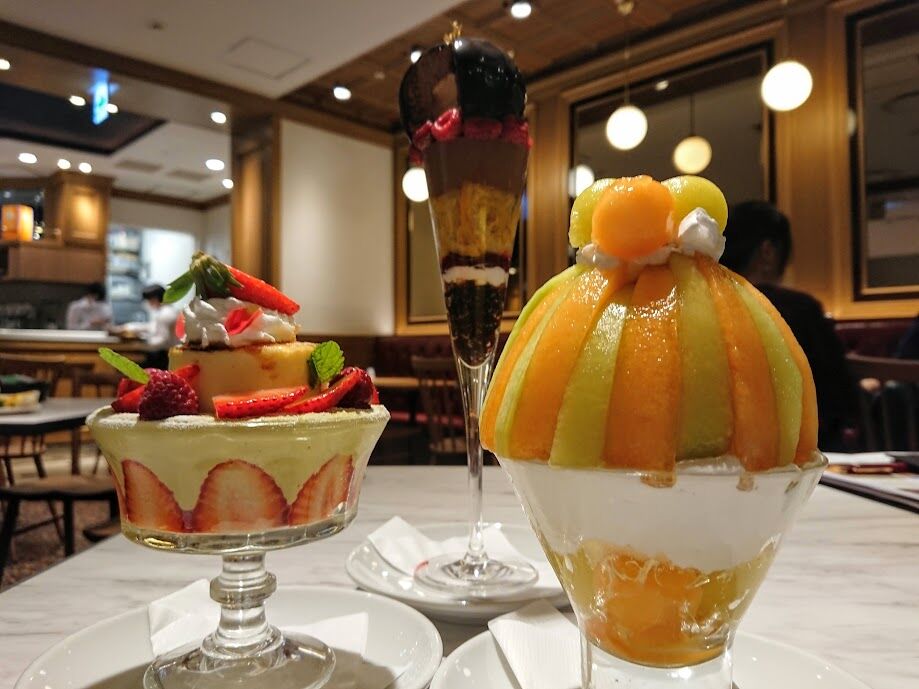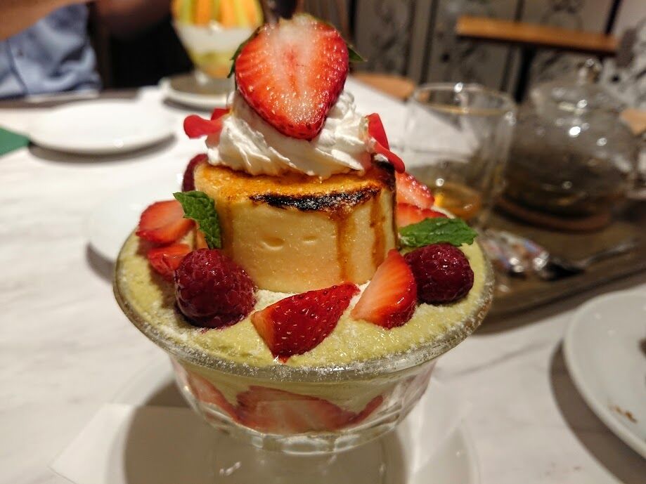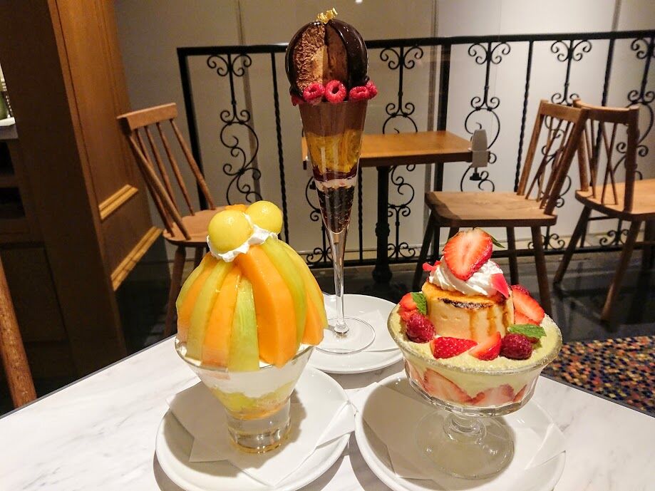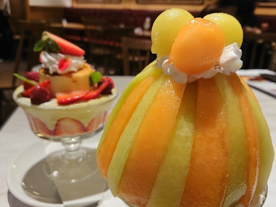 期間限定、季節のフルーツパフェ(1950円税込)は7月末まで。なんとメロンが2種類楽しめるという贅沢さにも増して、アイスが美味しいです!中に爽やかなゼリーも隠れていて(ほんのりシャンパンみたいな味でした)、こちらも飽きさせない工夫が😍