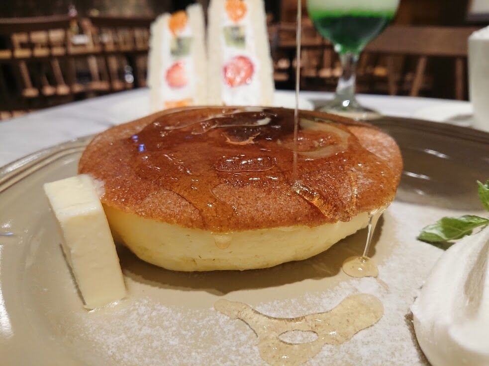 パンケーキ~ハニーバター(750円税込)某パンケーキ屋さんのフワフワパンケーキも美味しいけど、喫茶Largoさんのはまた違ったフワフワで、スポンジケーキのスポンジみたいなんです。弾力もあって凄く美味しいです。