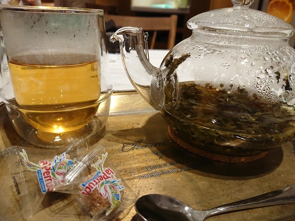 ジャスミンティー。ポットで出てきて、お湯のお代わりできます♪