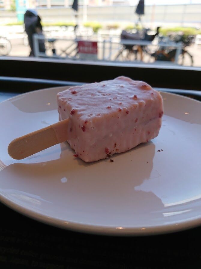 オーツミルクラテとストロベリーポップをオーダーいたしました。