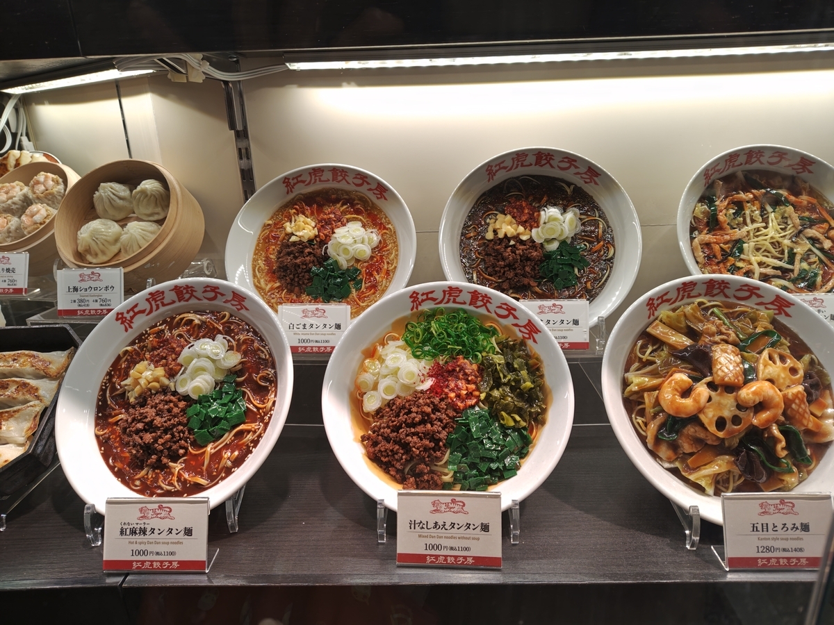 リアルでおいしそうな食品サンプル。紅虎餃子房さんは、でっかい餃子で有名です。でっかいのはたしか普通の4個分のサイズ。