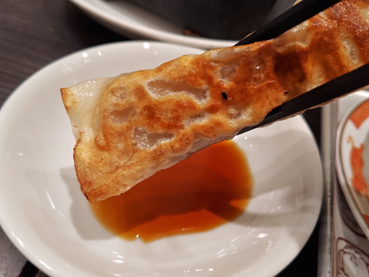 餃子は、コリコリした歯ごたえがある。なんだろう?軟骨とかかなぁ?わからなかった。とにかく美味しい。肉肉しいながらも野菜の甘みも感じられます。